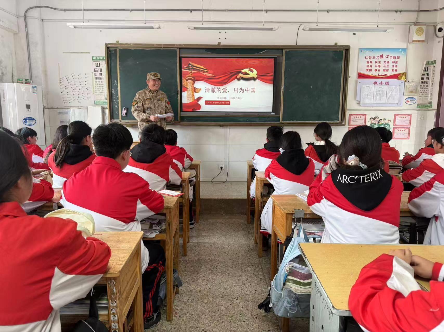 “爱国是什么?爱国是忠诚、是担当、是奉献、是传承……”宣讲现场,人武部宣讲员在人大代表的见证与参与下,以视频、图片为载体,结合深情讲述,带领同学们重温英雄事迹。从抗日英雄杨靖宇的铁血坚守,到上甘岭战役中黄继光的英勇无畏;从黄海前哨开山岛王继才30余年如一日的守岛奉献,到“00后”战士陈祥榕“清澈的爱,只为中国”的赤诚担当,一个个英雄故事感人至深、催人奋进。
