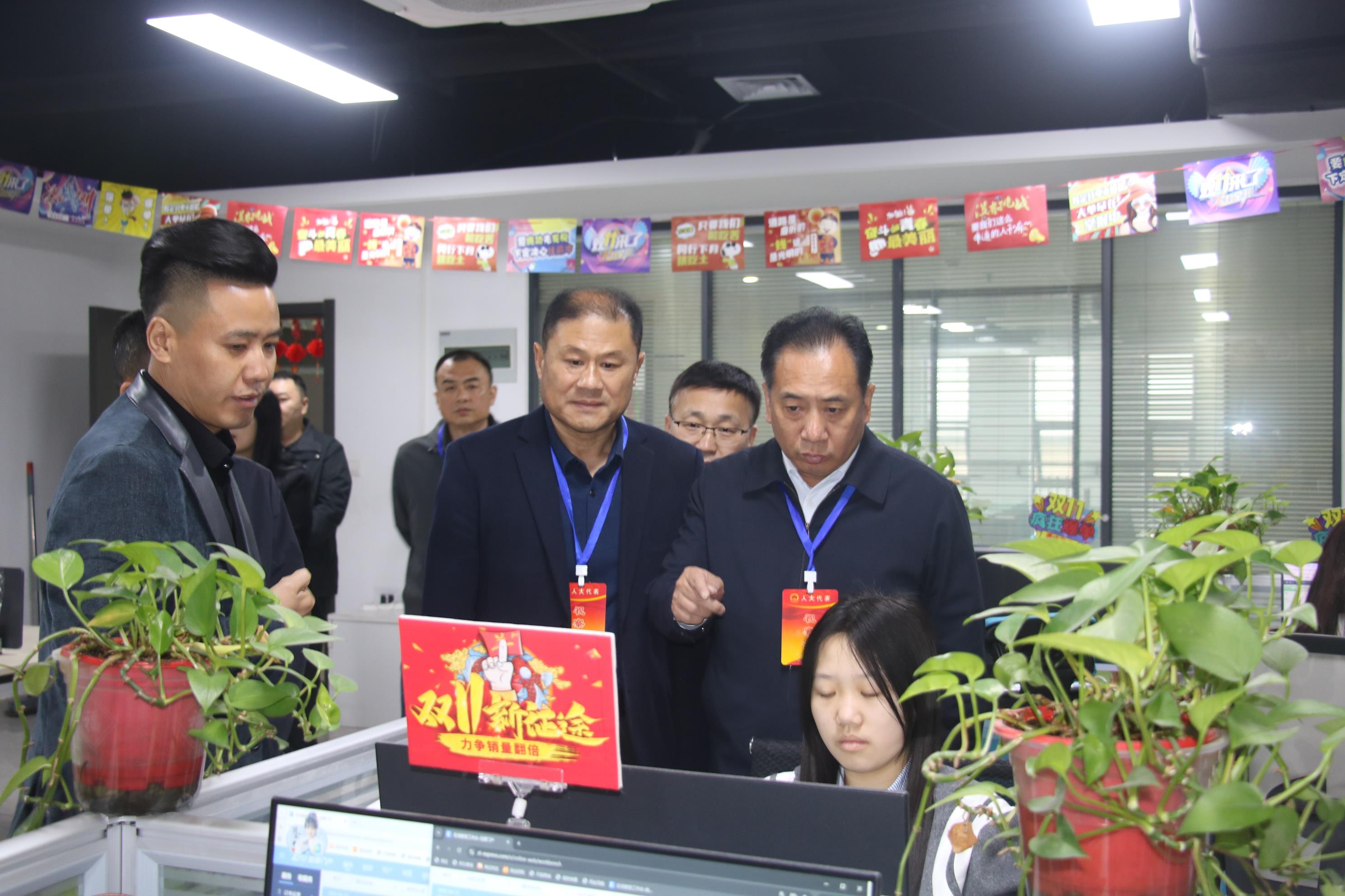 调研组一行先后走访了江苏点度科技有限公司、沛县思国区域农业综合服务中心、杨屯镇政务服务中心等多个具有代表性的点位。通过现场察看、深入交流、细致询问,调研组全面了解了公共文化数字化服务、农村数字基础设施建设、智慧农业创新应用、基层治理数字化转型等多方面情况。调研过程中,滕坤副主任与农业企业负责人、基层工作人员、电商从业者等亲切交谈,详细询问数字化应用成效、技术使用难题、服务保障需求等,全面掌握我县数字乡村建设真实情况。
